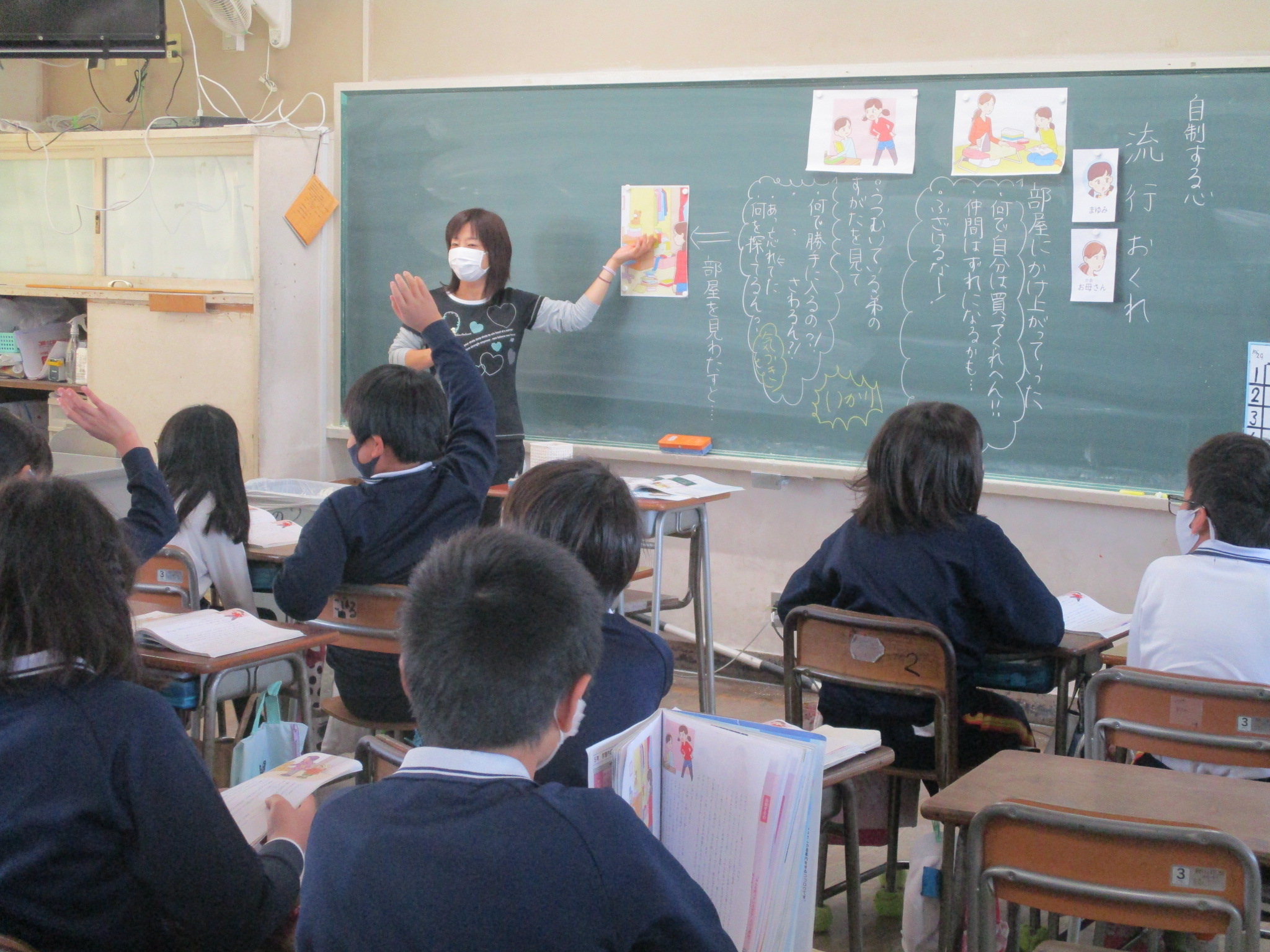 3年生も「がんばりつづけること」や 「仲間を大切にすること」についての学習をして、自分の考えをしっかりふりかえることができていました。1年生の教室です。